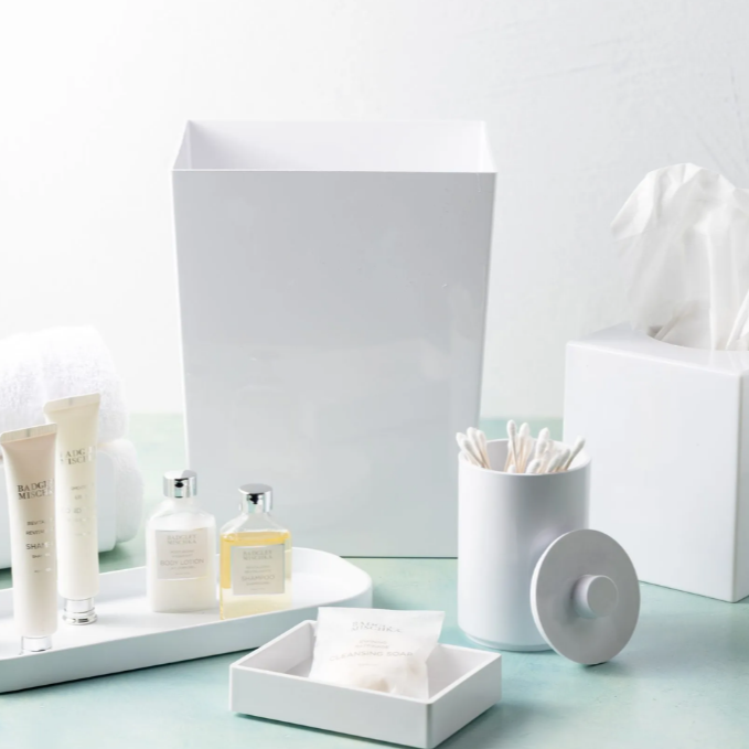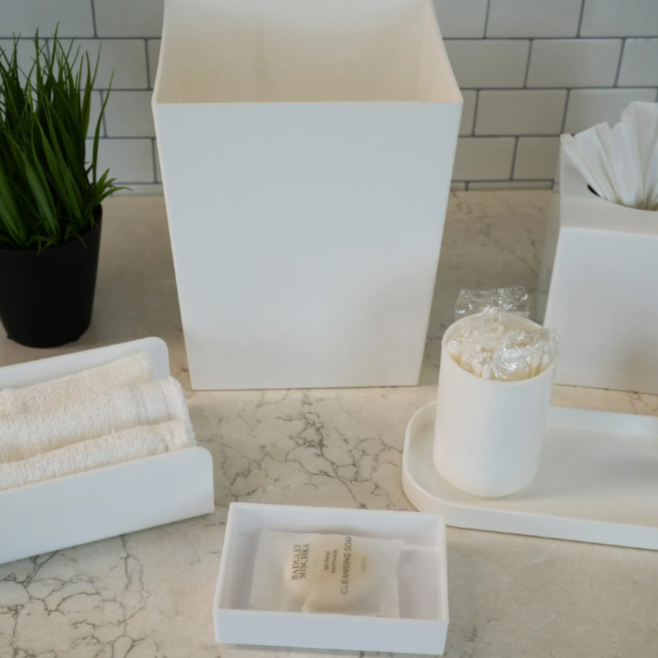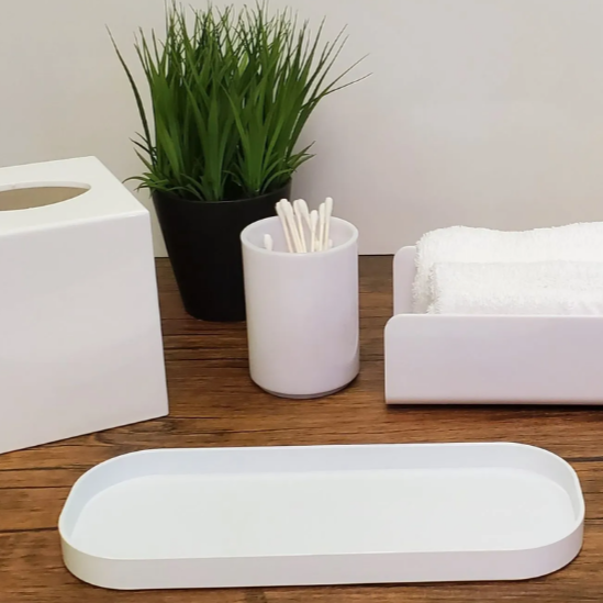- Slim-fit rectangular design for bathroom counters