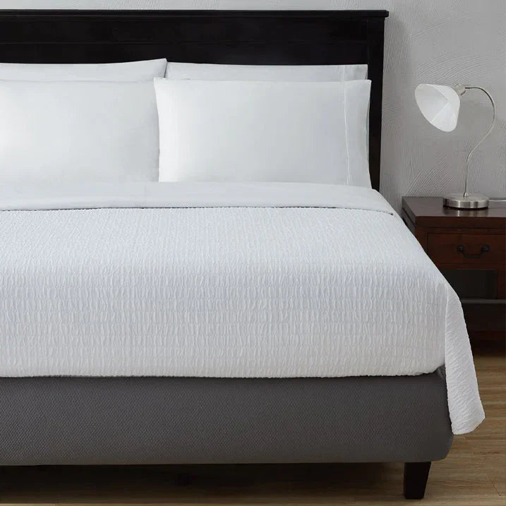 The textural Prism Puff Jacquard top sheet enhances both classic and contemporary décor, elevating any guest room.