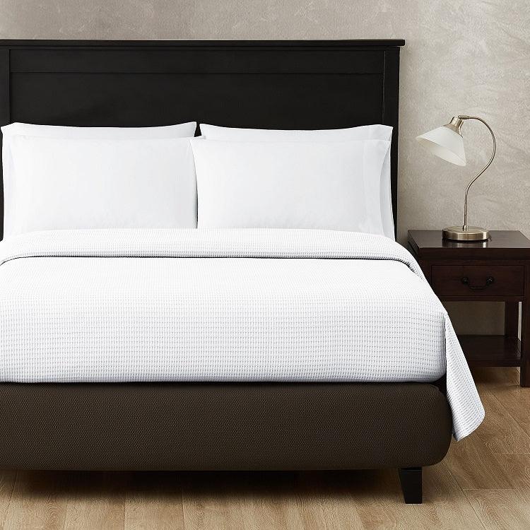A modern rendition of a classic waffle weave with a twist. The small-scale pattern interpretation adds rich texture.