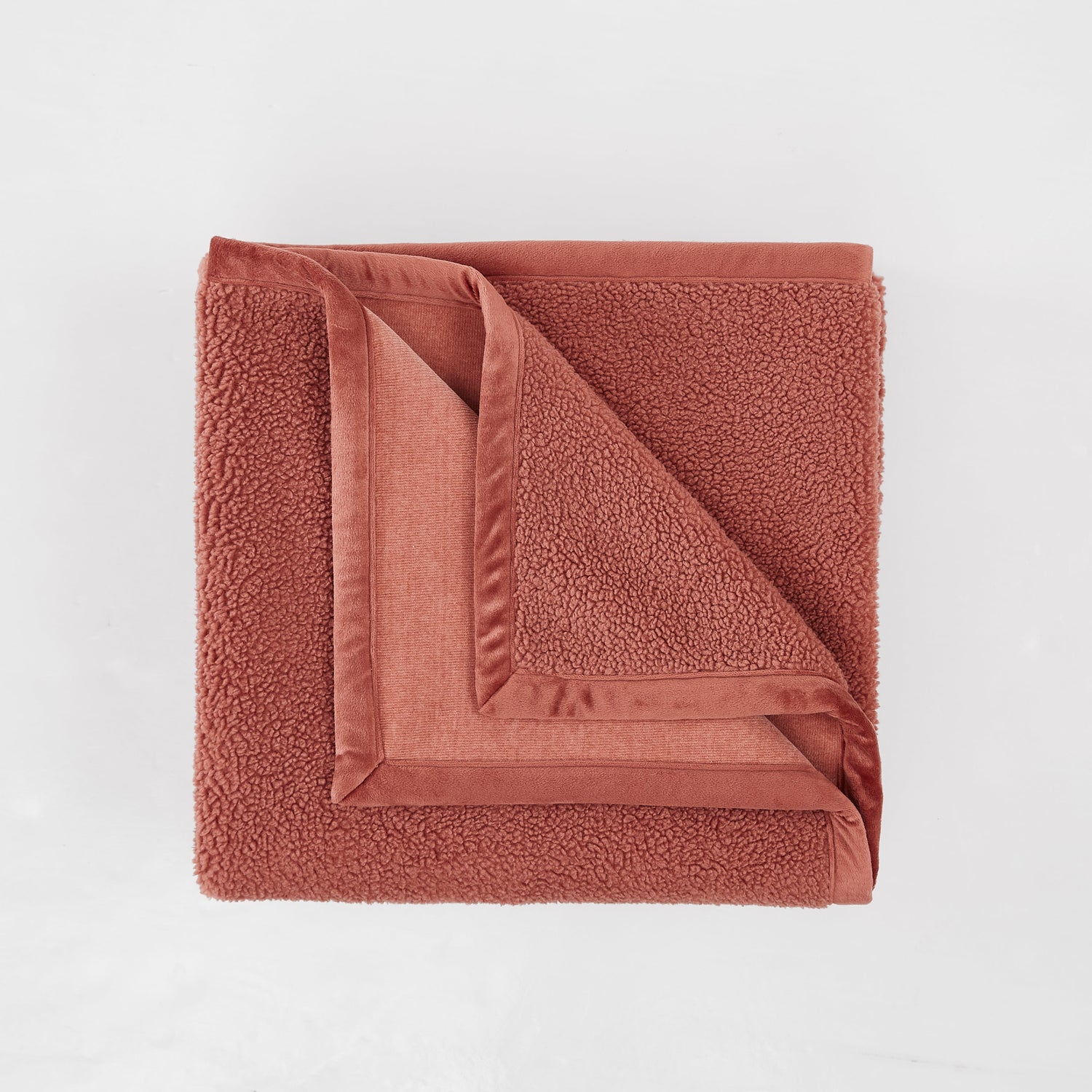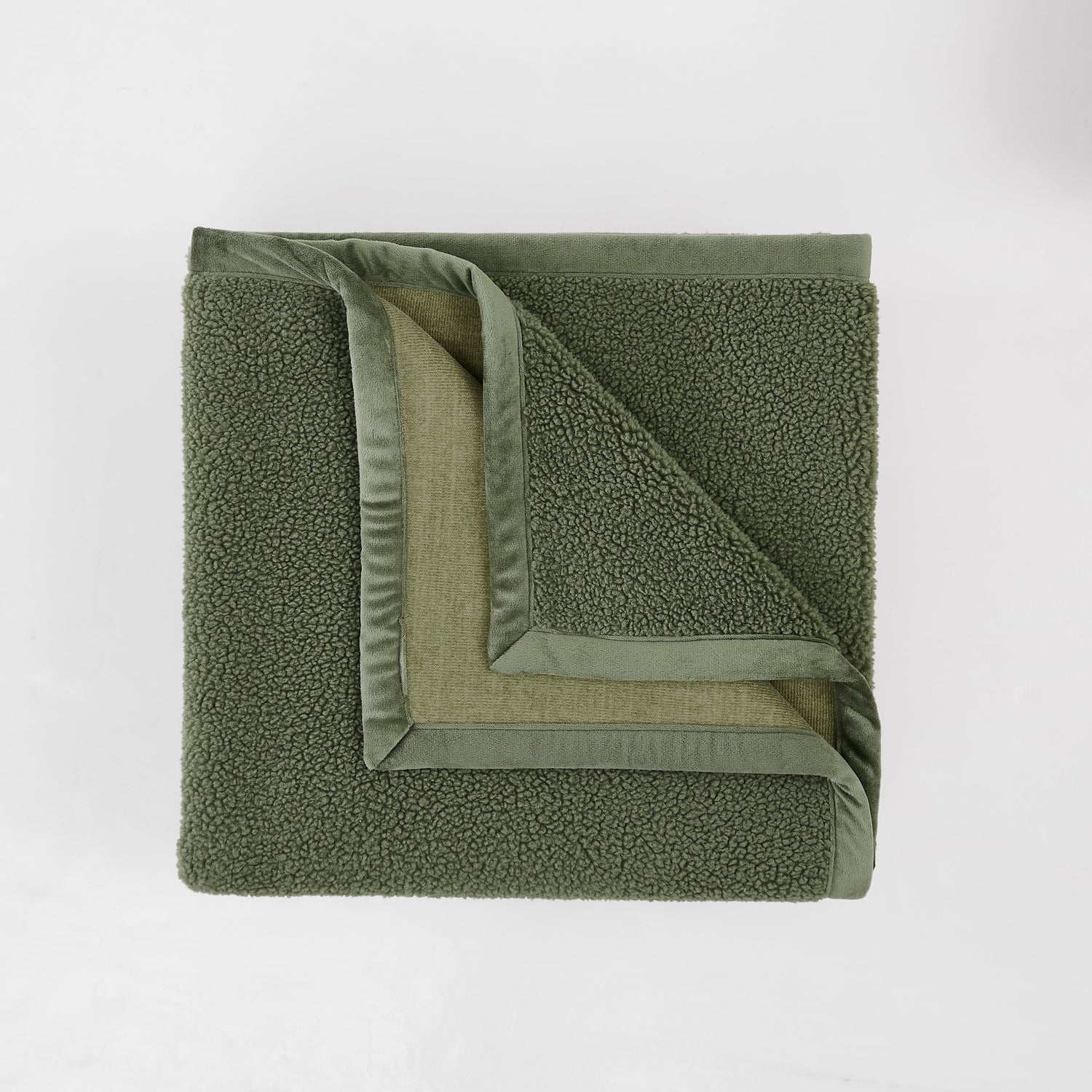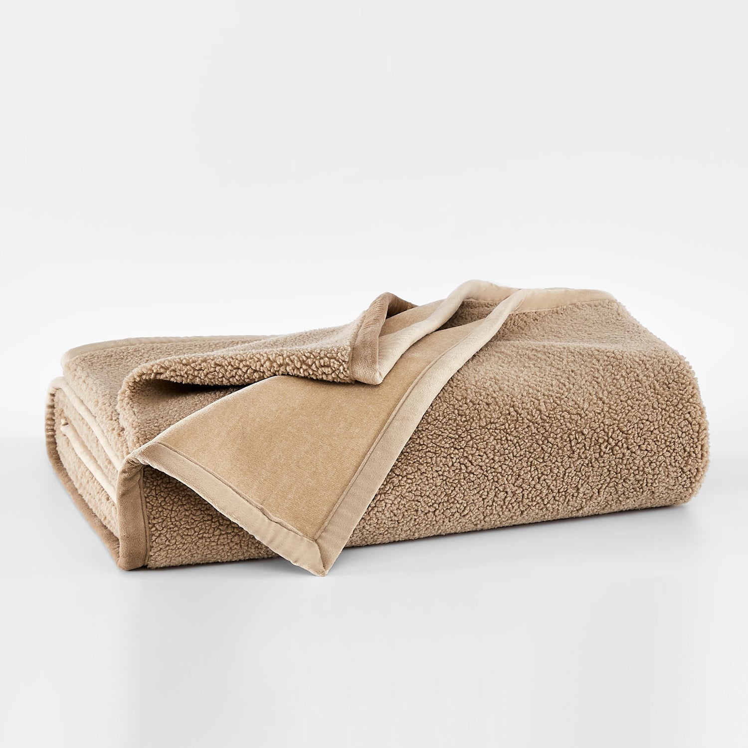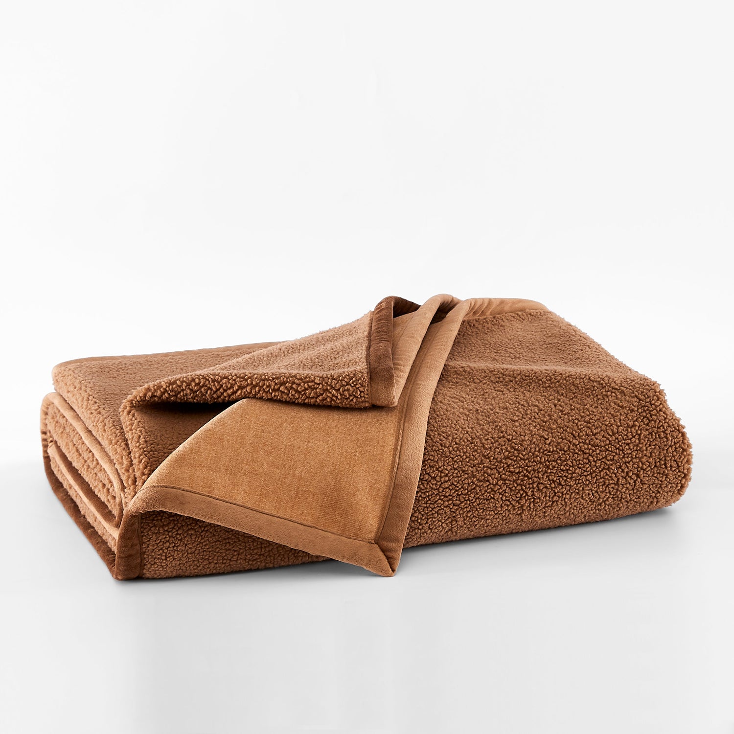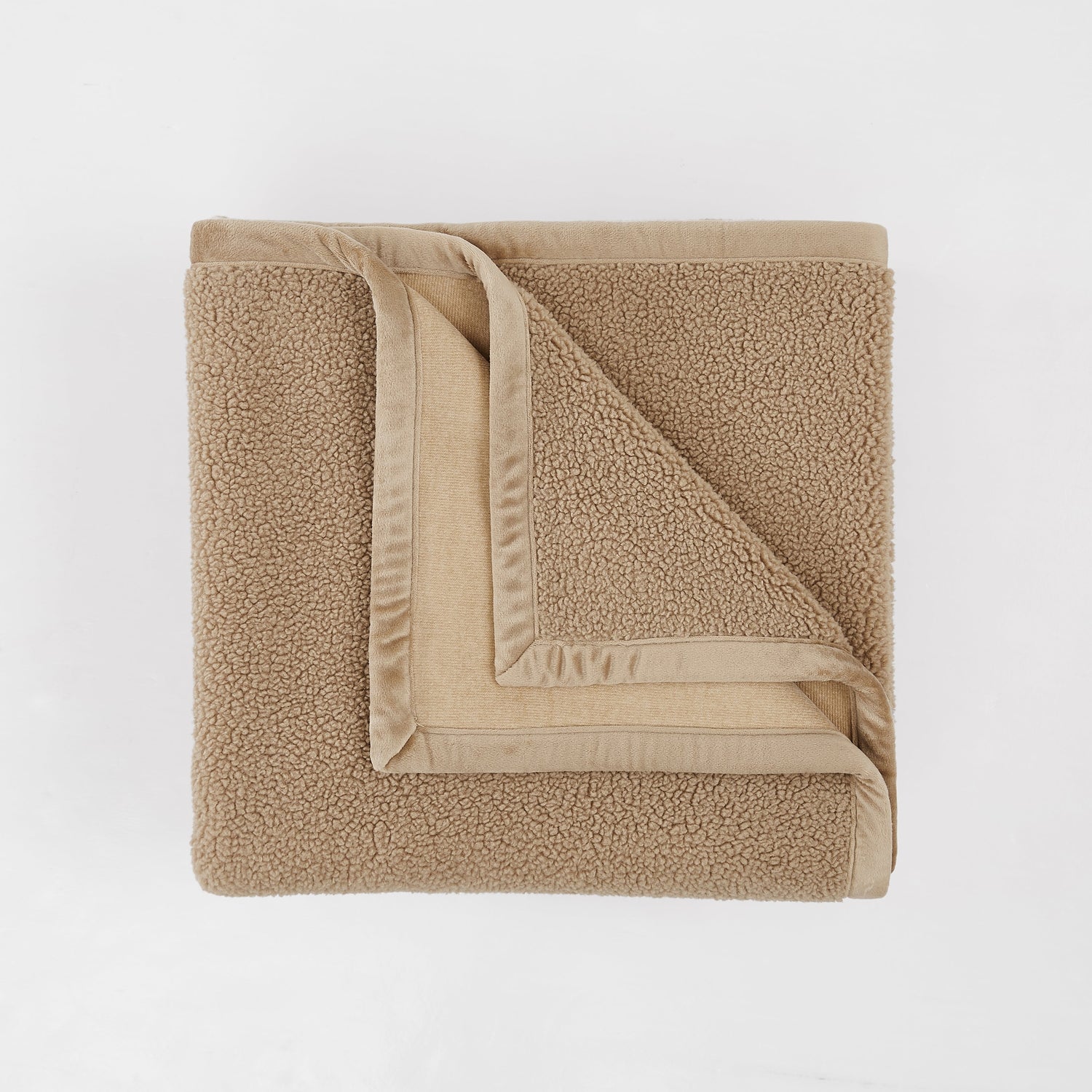 Wrap your guests in comfort and style with the Sherpa Bed Throw, designed for versatility and luxury. Featuring a plush boucle-textured face and a smooth sueded reverse, this reversible throw offers two chic looks in one. Finished with elegant suede mink hems, it brings warmth, depth, and sophistication to any room.