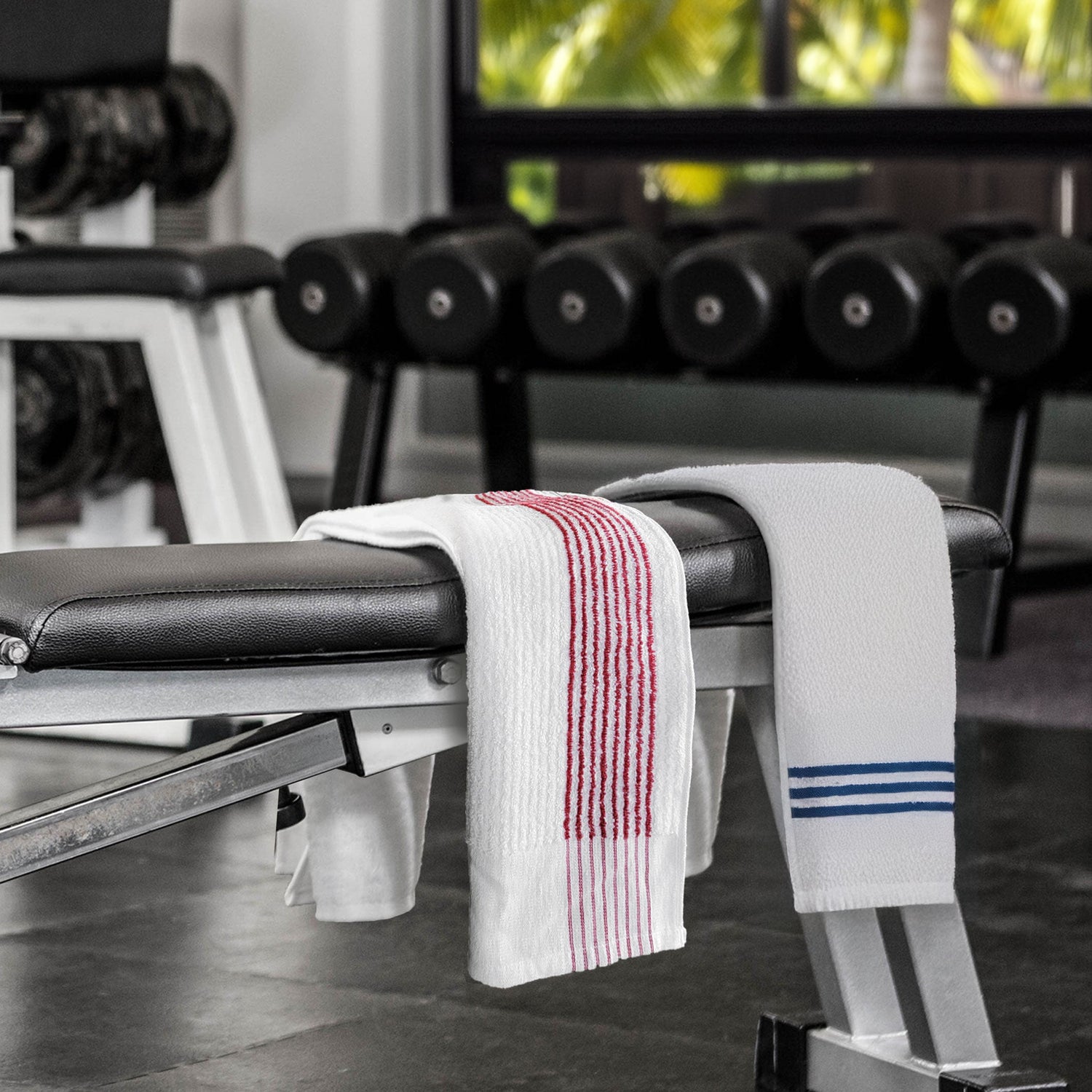 The Premium Ribbed Color Stripe Gym Towel is built for high-performance use, combining bleach-proof durability with soft absorbency and customization-ready design.
