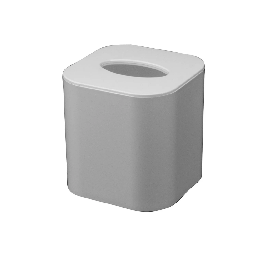 - Sleek, modern design hides standard square tissue boxes